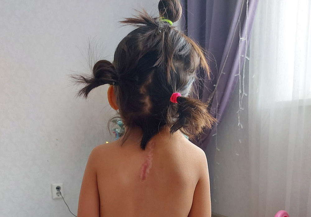 „Hallo, liebes Team von GMG. Wir sind Euch für die bisherige informative Unterstützung dankbar. Wir sind eine einfache junge Familie aus Kasachstan. Unser einziges Kind ist 4 Jahre alt, geb. am 26.08.2017, es ist sehr ein liebevolles Mädchen namens Nursesim. Es hatte eine angeborene Skoliose im Stadium 4. Im Oktober 2021 wurde in unserer Hauptstadt eine OP vorgenommen. Wir beobachten nach der Operation keine Besserung, ganz im Gegenteil, der Höcker sowie die Krümmung haben zugenommen. Unsere Ärzte in Kasachstan sind leider nicht so professionell genug und weigern sich deshalb, eine weitere Operation vorzunehmen. Sie hatten uns in Aussicht gestellt, uns auf eine Zukunft mit einem Rollstuhl einzustellen.