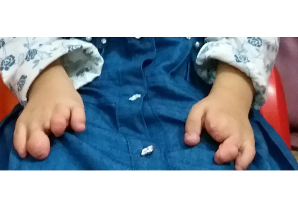 DIAGNOSE: Oligodaktylie, angeborene Fehlbildung der Körperglieder, das Fehlen eines oder mehrerer Finger, sowie Brachydaktylie, eine eingeborene fehlende Entwicklung der unteren Glieder.